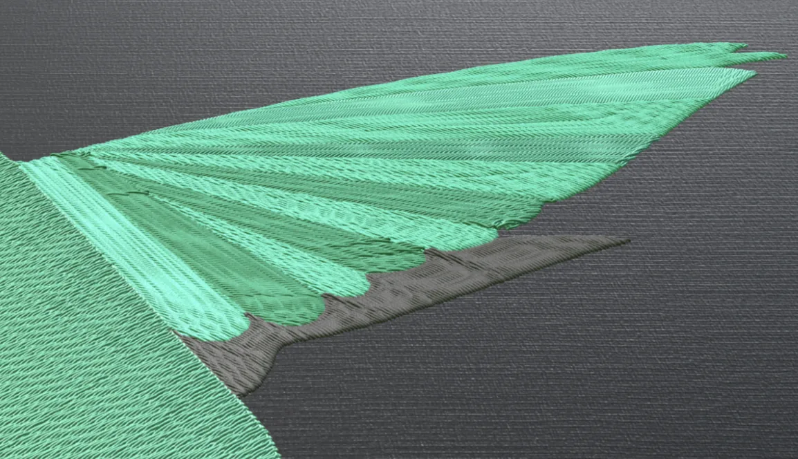 Ditch the flat 2D previews. Spot density issues, rogue stitches, and potential bird-nesting using physics-based 3D thread layering—reducing failed runs.