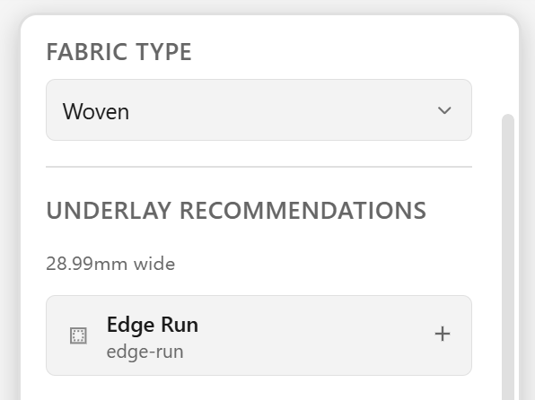 Get smart recommendations for underlay stitching and stabilizer layers tailored to your specific fabric type.
